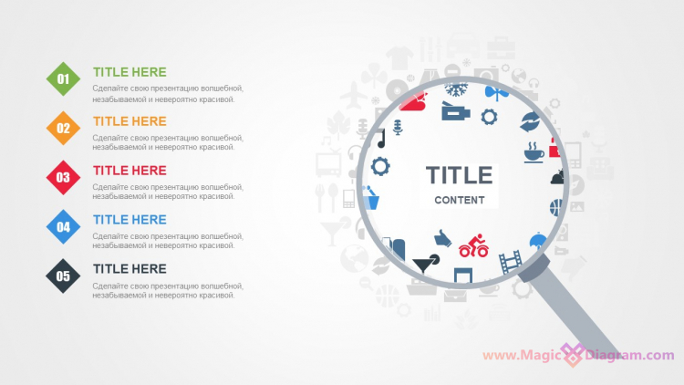 Лупа с разноцветным списком
